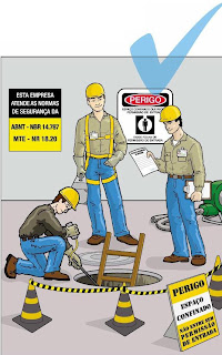 o para os trabalhadores quanto aos riscos a que estão submetidos, a forma de preveni-los e o procedimento a ser adotado em situação de risco, conforme norma ABNT NBR 14787. O Ministério do Trabalho e Emprego possui Norma Regulamentadora específica para espaços confinados, a NR 33. Deve existir sinalização (placa de advertência) com informação clara e permanente, proibindo a entrada de pessoas não autorizadas no interior do espaço confinado. Quando os trabalhos estiverem paralisados, além da sinalização de advertência, devem ser previstos dispositivos para impedimento da entrada no espaço confinado.